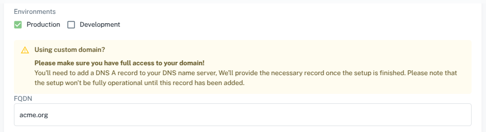 specify a custom domain that you own in the FQDN input.